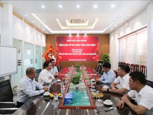 Hòa chung không khí cả nước hướng tới kỷ niệm Ngày Doanh nhân Việt Nam (13/10), sáng ngày 09/10/2025, Đoàn công tác của Sở Tài chính tỉnh Ninh Bình do đồng chí Mai Văn Quyết – UV Ban Thường vụ tỉnh uỷ, Giám đốc Sở làm Trưởng đoàn đã đến thăm và chúc mừng Công ty Cổ phần Đầu tư Hạ tầng KCN Bảo Minh.